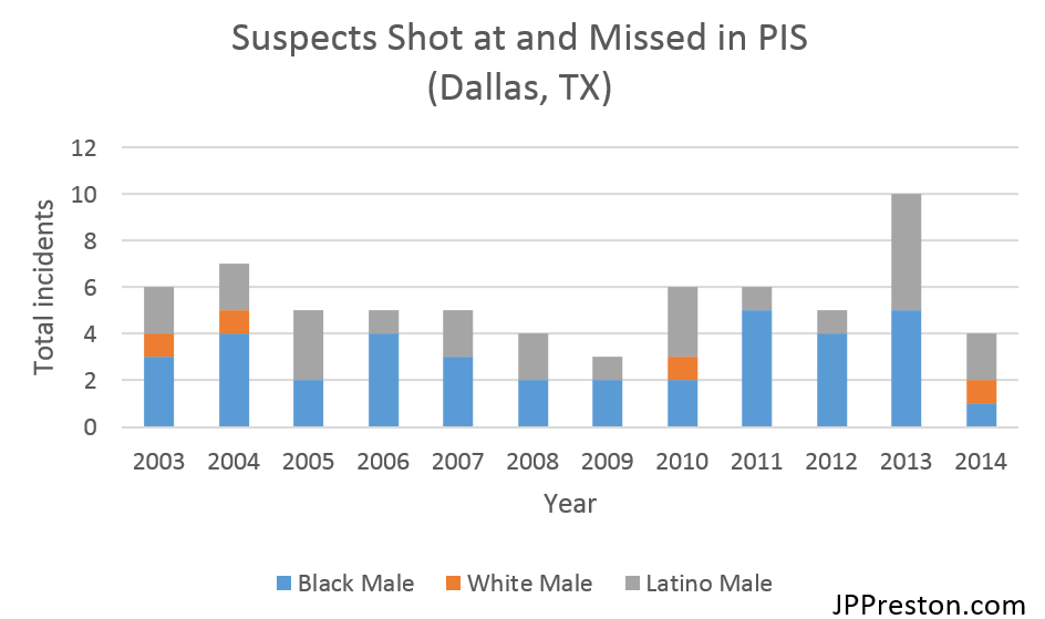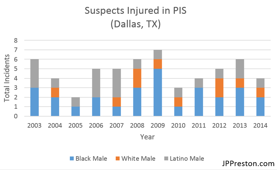 Yet, in a highly commendable move, the Dallas Police Department (DPD) released its self-monitored spreadsheets on all PIS incidents from 2003 to 2014 as part of an effort to improve police-community relations. Amazingly, the data includes demographics not only on the victim but also the officer(s) involved. Rightfully so, it was picked up by local and national media with calls that more departments follow the DPD’s lead.